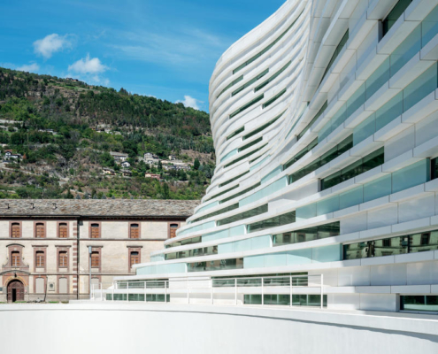 MCA – Mario Cucinella Architects tasarımı Valle d’Aosta Üniversitesi Kampüsü, eski Testafochi Kışlası’nı Aosta kentinin kültürel ve kamusal hayatını yeniden canlandıran çağdaş ve çevreye duyarlı bir simgeye dönüştürüyor.
