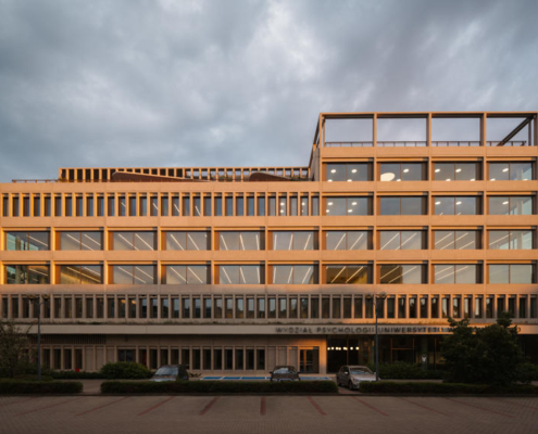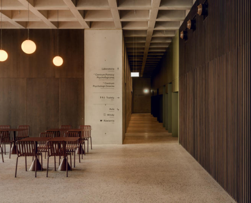 Varşova Üniversitesi Psikoloji Fakültesi’nin yeni binası, akademik alan kavramını yeniden tanımlıyor. Bu bina sadece eğitim amaçlı olarak tasarlanmamış; aynı zamanda kullanıcıları arasındaki ilişkileri destekleyecek ve üniversite ile şehir arasında bir diyalog ortamı yaratacak şekilde kurgulanmış. Project Praga tasarımı Varşova Üniversitesi Psikoloji Fakültesi, öğretim işlevlerini açıklık ve sürdürülebilir tasarım anlayışıyla birleştiriyor.