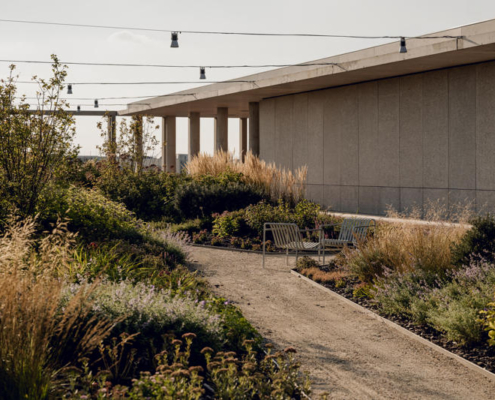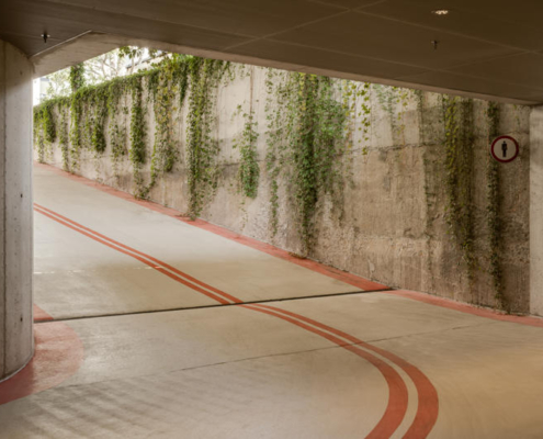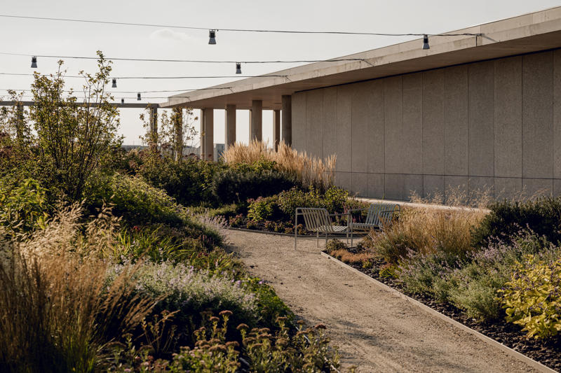 Yeşillik, binanın ayrılmaz bir parçasını oluşturuyor. Yapıyı ve yapının çevresini kaplayarak bütünsel bir bütün oluşturuyor. Binanın çevresindeki ağaçlardan iç mekan bitkilerine ve çatı bahçesine kadar doğa her yerde mevcut olup mekana yumuşak, doğal bir karakter kazandırıyor. Zemin kattaki kanopide bulunan yabani çiçekler yağmur suyunu tutarak cepheler boyunca bir mikro iklim yaratmasının yanı sıra; çatı bahçesinde yürüyüş yolu, güneşli oturma alanları ve kapalı bir açık hava odası oluşmasını sağlıyor. Ayrıca bitkiler, kütüphane terasında ve özel bir mikro bitki yetiştirme alanında da yer alıyor. Bu yerleştirmeler dekorasyon amaçlı değil, yeni Psikoloji Fakültesi’nin atmosferini ve kimliğini şekillendiren mimarinin tam anlamıyla bir bileşenini oluşturmak amacıyla gerçekleştirilmiş. Binanın ham mimari ifadesinin arkasında, gelişmiş bir sürdürülebilir çözümler sistemi yatıyor. Isıtma ve soğutma, jeotermal kuyulara sahip ısı pompaları ile sağlanırken çatıda bulunan fotovoltaik panellerle yağmur suyu toplanarak yeniden kullanımı sağlanıyor. Dış panjurlar aşırı ısınmaya karşı koruma sağlarken, yeşil çatılar doğal yalıtımı güçlendirmeyi sağlıyor.