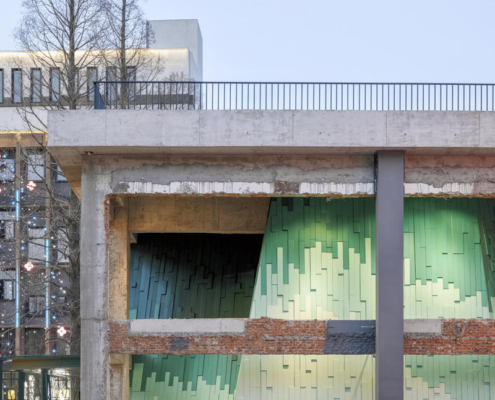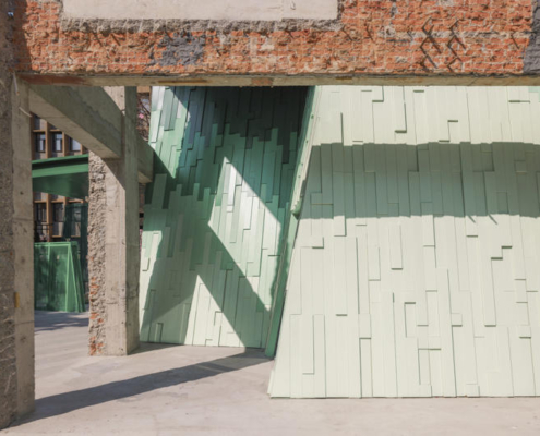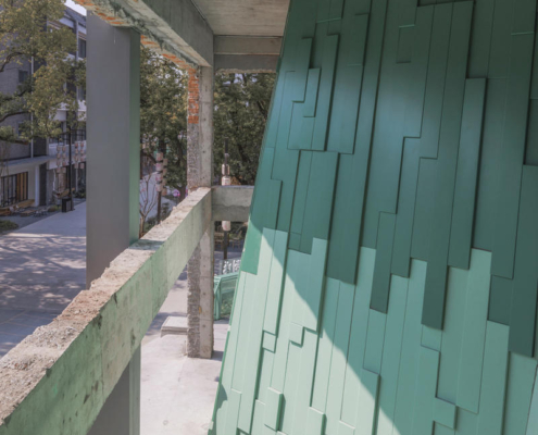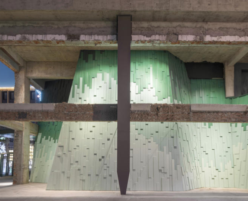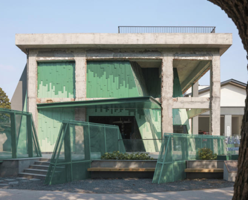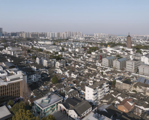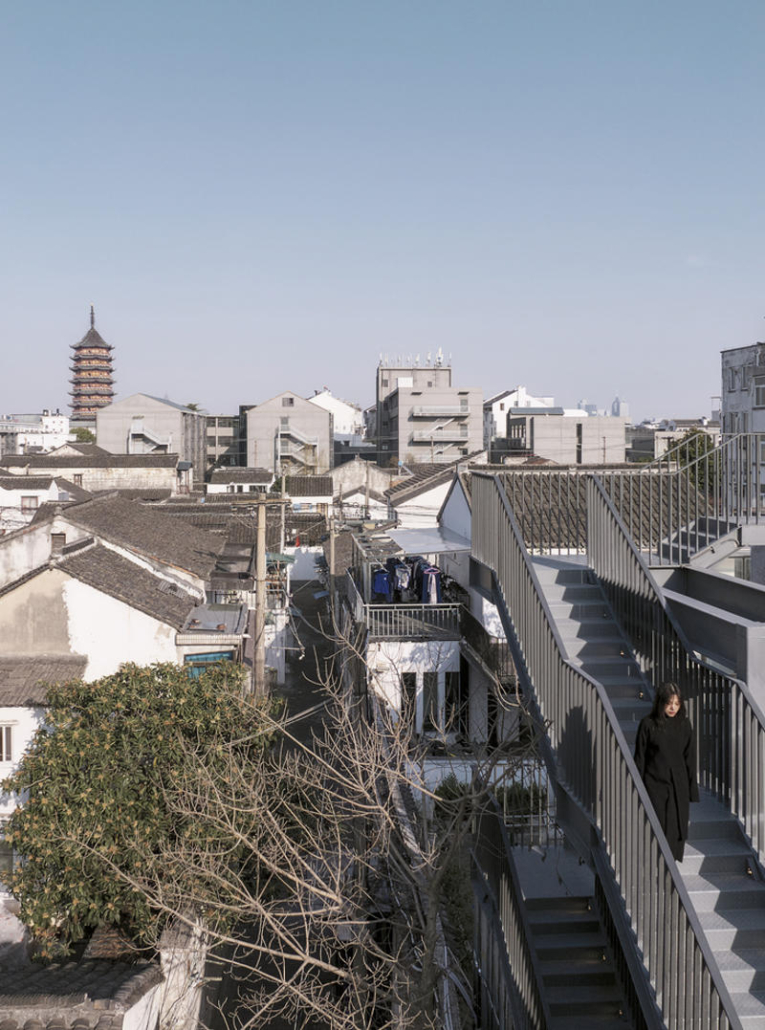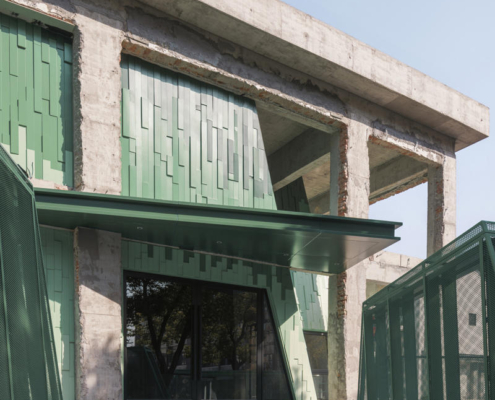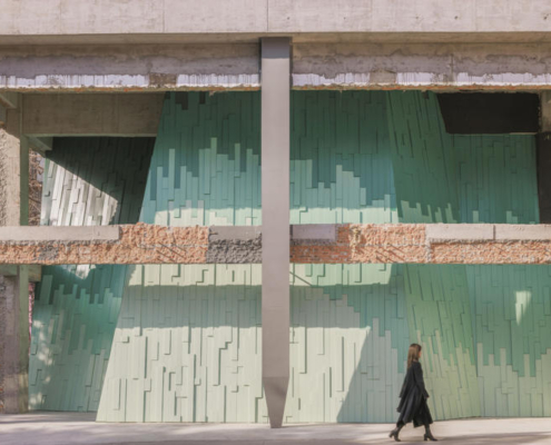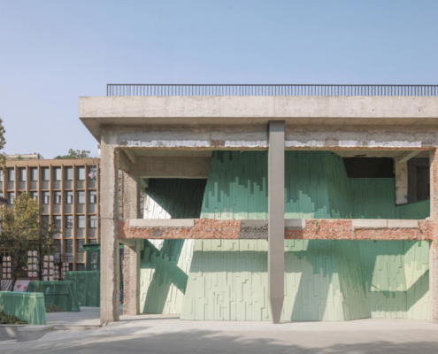 Wutopia Lab, Suzhou’nun tarihi Taohuawu bölgesinde yer alan “Verdant Ridges” (Qing Zhang) Tiyatrosu’nun tasarımını gerçekleştirdi. Tang Bohu’dan ilham alan bu tiyatro yapısı, bir zamanlar harabe halinde olan bir endüstri yapısından doğarak, tarih ile çağdaş mimarlık arasında şiirsel bir ilişki kuruyor. Proje alanı, geçmişte Xinguang İpek Dokuma Fabrikası’na ev sahipliği yapıyormuş. Yenilenen 5 numaralı yapı, bugün Suzhou’ya özgü sahne performanslarını ve orta ölçekli toplantıları bir araya getiren çok işlevli bir tiyatroya dönüştürülmüş.