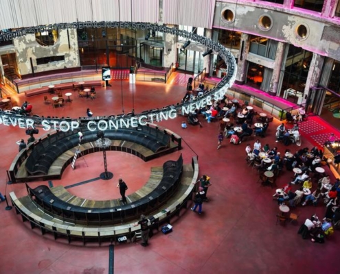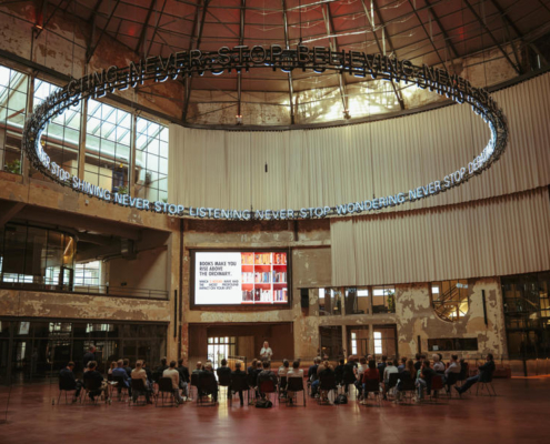 En büyük zorluk, yapının içinde erişilebilirlik, akustik ve teknik gereksinimleri karşılayacak şekilde çalışmak olmuş; bu durum tasarımcılar ve yükleniciler arasında büyük bir esneklik ve yakın iş birliği gerektirmiş. Malzemelerin yeniden kullanımı, mobilyaların iyileştirilmesi, tasarımın uyarlanması gibi adımlarla bu süreci gerçek bir ekip çalışmasıyla yürütmek, Wintercircus vizyonunda kilit rol oynuyor. Wintercircus, kentin ekonomik ve sosyal katalizörü olarak çeşitli grupları bir araya getirecek ve merak ile girişimciliği teşvik edecek bir alan sunuyor. Girişimciler, araştırmacılar, öğrenciler, dijital yaratıcılar ve genel halk arasında kendiliğinden gelişen etkileşimler ve çapraz iş birlikleriyle yenilik için fırsatlar yaratılması amaçlanıyor. Aynı zamanda kentin döngüsel ekonomisini güçlendirirken tarih katmanlarını da görünür kılma olanağı sağlıyor. Nihayetinde, tasarım binanın ömrünü uzatmayı ve kampüs için sürdürülebilir bir gelecek sağlamayı hedefliyor.