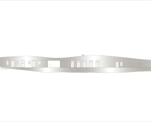 Yunan Adaları denilince akla yığılmış beyaz kutular gelse de tasarımda mimarlar, evin ana cephelerini kserolitler olarak hayal ederek, alçaktan başlayan ve yavaş yavaş yükselen duvarlar sayesinde bu morfolojik önyargıya meydan okumuş. Duvarlar aralarında boşluklar oluşturarak, birbirinden bağımsız ve eğime göre yaklaşıp uzaklaşan yapılar haline getirilmiş. Bunu sağlamak için evin tüm programları sırayla yerleştirilmiş ve böylece yapı uzun ve dar bir forma kavuşturulmuş.