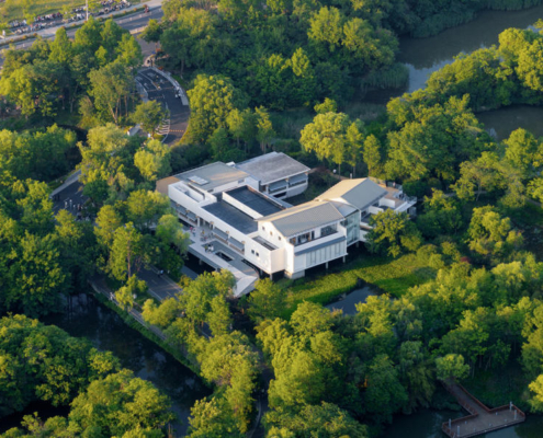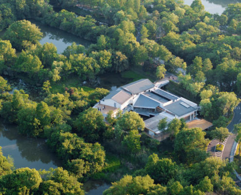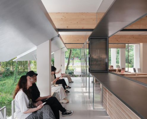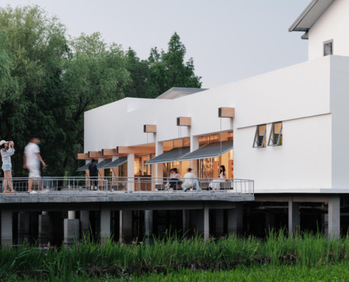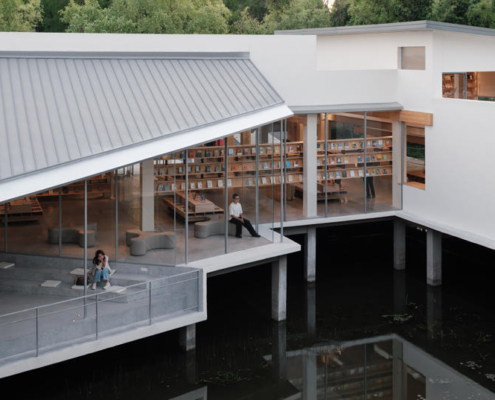 Hangzhou’daki Xixi Sulak Alanı, kentsel yaşamda yürüyüş ve bisiklet için günlük bir alan sağlıyor. Bu proje ile sulak alanın içinde şeffaf ve açık bir kitabevi inşa edilerek insanların kütüphane ve doğayı aynı anda deneyimleyebileceği, kentin doğal yaşamına entegre olmuş kamusal bir mekan yaratılmış.
