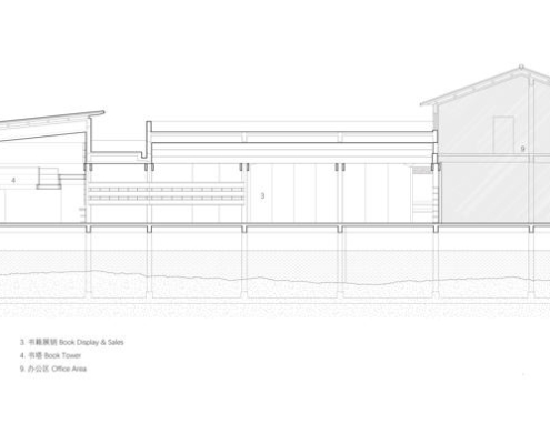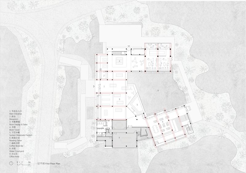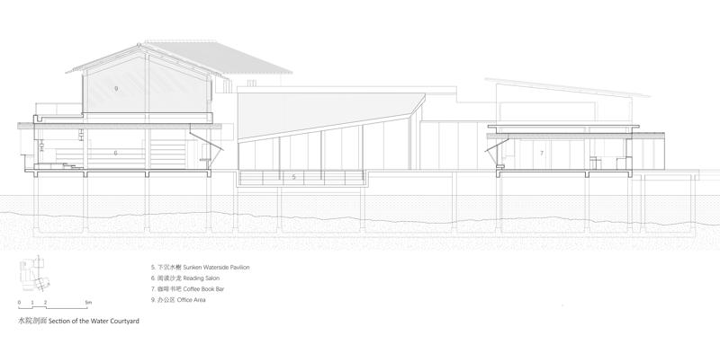 Proje, Xixi Sulak Alanı’nın kuzey başlangıcında yer alıyor. Mevcut bina, yirmi yıl önce ofis binası olarak inşa edilmiş. U biçimli simetrik bir plana sahip olan mevcut yapı, işlevlerine göre düzenlenen mekanların karmaşık bir hacimde birleşiminden oluşuyor. Bina, sulak alanın üzerinde yükselen ve üç kanatla çevrili kapalı bir su avlusuna sahip. Tasarım, binayı kitabevine dönüştürmek için cephe yenilemesi ve yeni bir iç mekan tasarımını gerektirmiş.