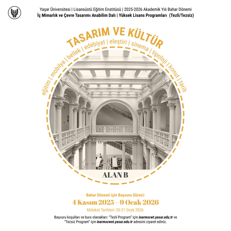 Yaşar Üniversitesi İç Mimarlık ve Çevre Tasarımı Yüksek Lisans Programları 2025–2026 Bahar Dönemi Başvuruları Başladı